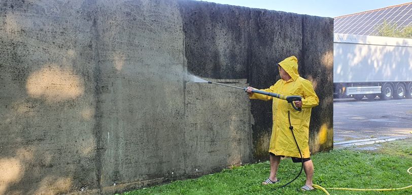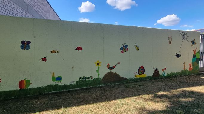 Die Hallenwand und die Umfassungsmauer des Nachbaranwesens werden im Jahre 2022 im Rahmen eines Kunstprojektes des OGV mit floralen Motiven verziert.